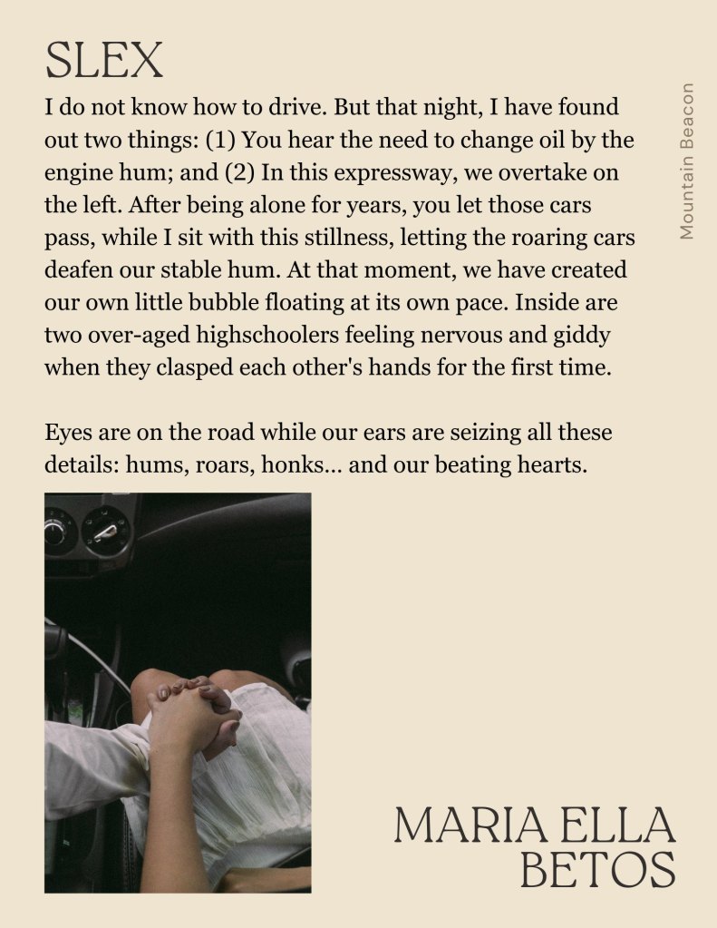 Pero kamakailan lang, tumawid ako sa mismong overpass, gabing-gabi, habang hawak ‘yung puson kong parang pinupunit sa loob. Sa ilalim ng ilaw ng poste, tinangka pa niyang habulin ako. Naririnig ko pa boses niya habang tumatakbo ako: “’Wag kang maarte, ikaw may kasalanan nito!” Gusto ko siyang sigawan, sabihing, “Hindi ako makina!” Pero wala na kong boses. Naiwan na sa bahay.